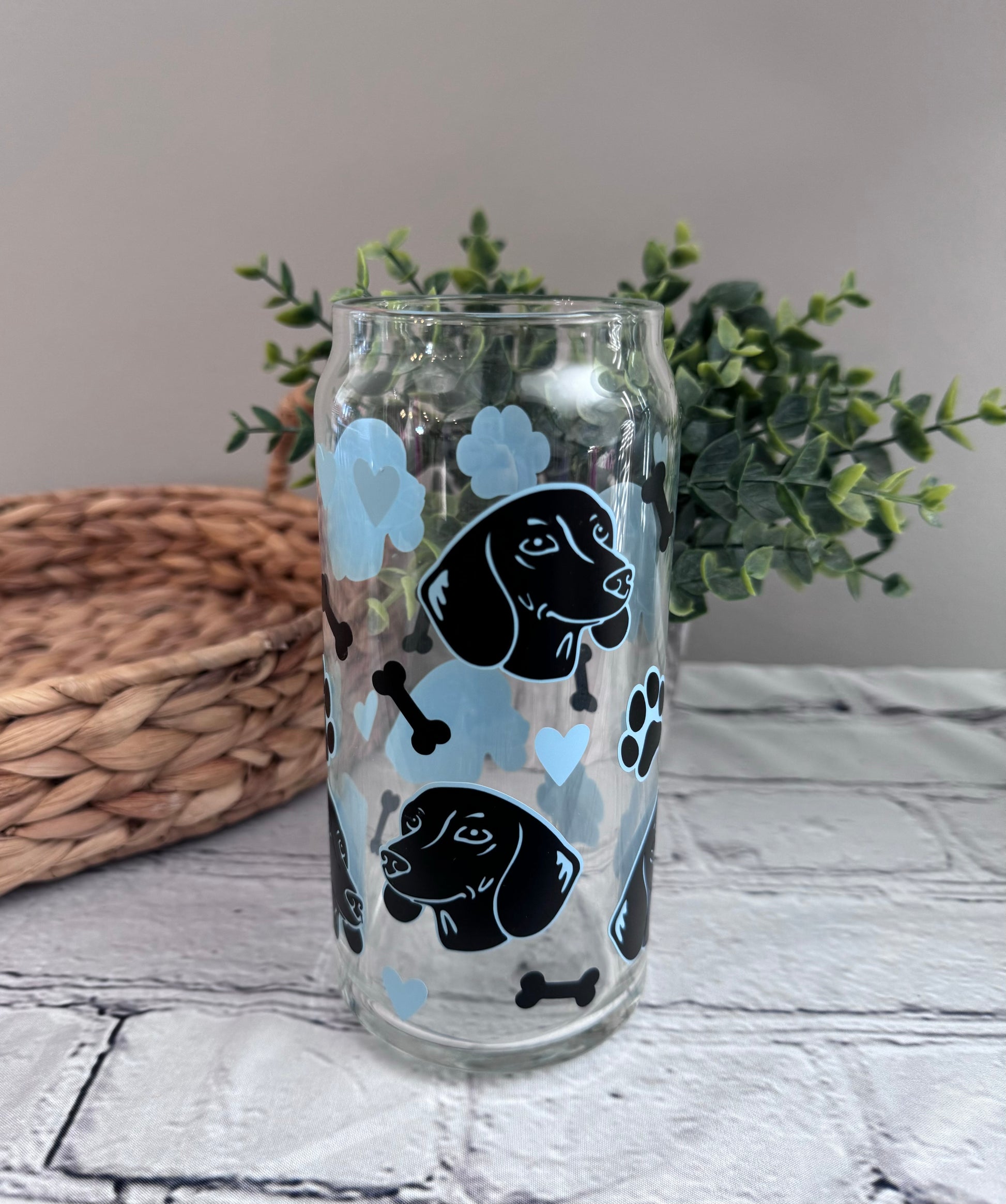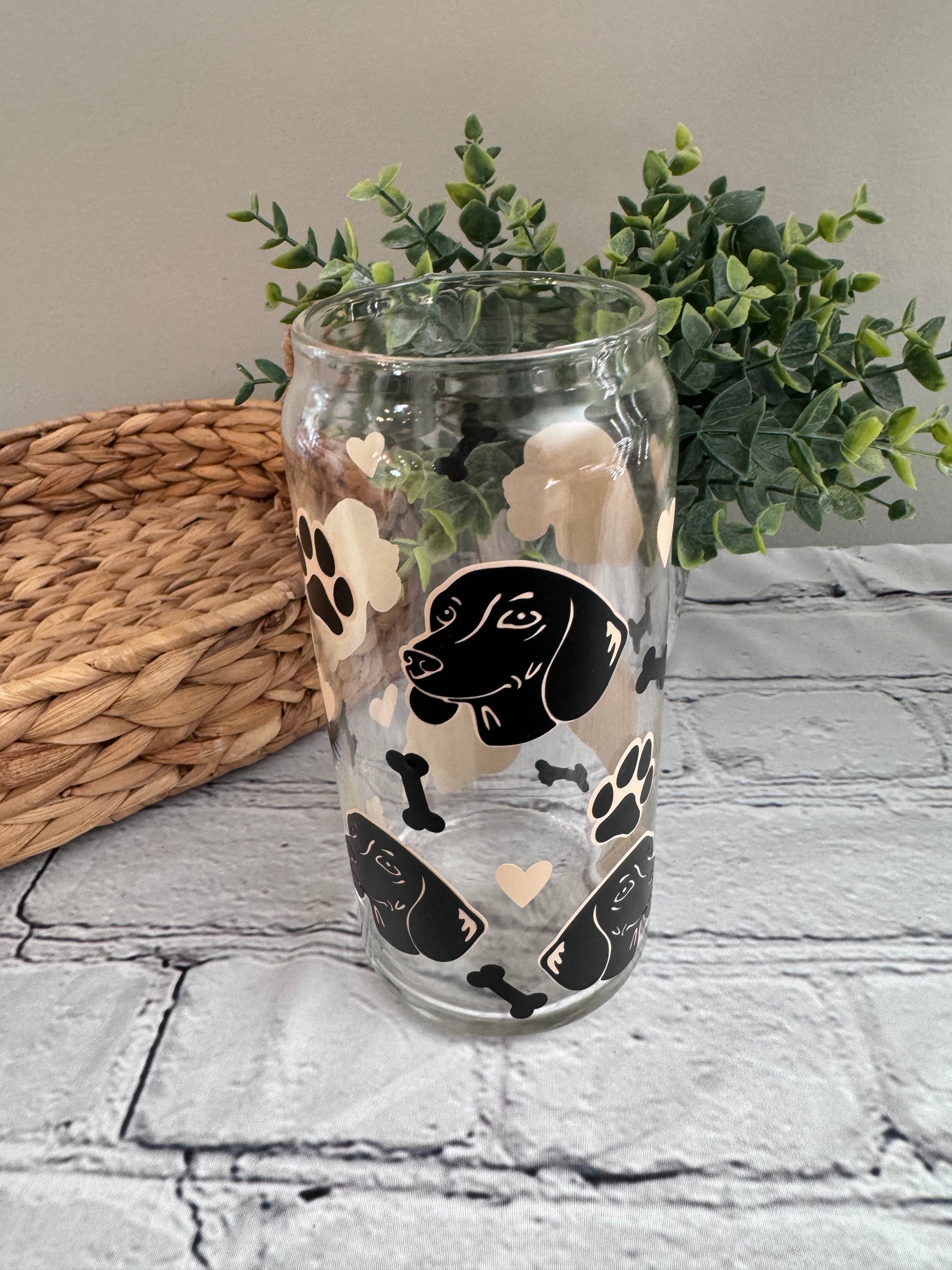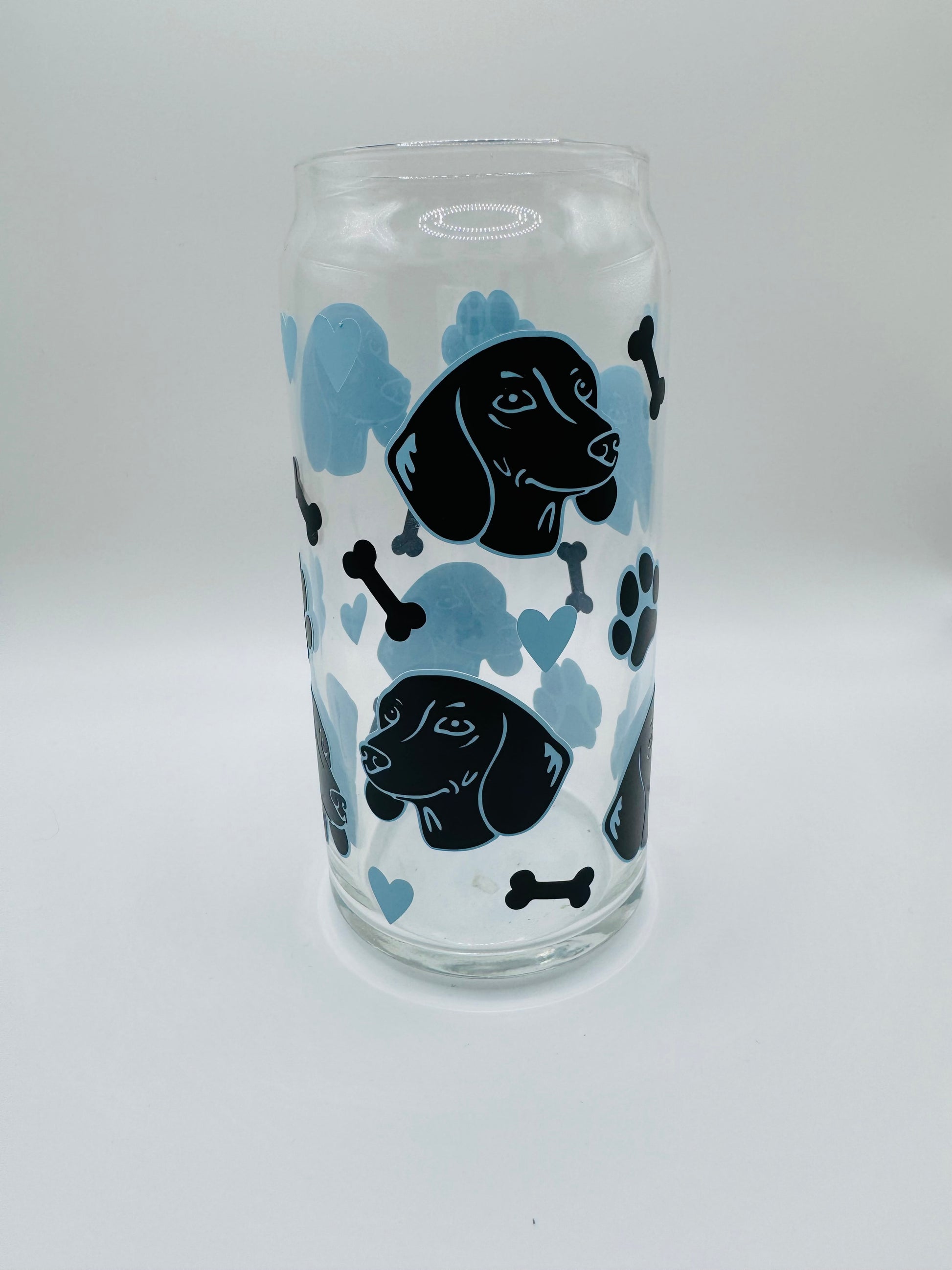 Beer can style glass. Perfect for iced coffee or any other type of cold drink! Designs are made from premium permanent vinyl and hand applied. Placement and color of designs may vary slightly from glass to glass. Bamboo lid and glass straw are included. This glass makes the perfect gift!