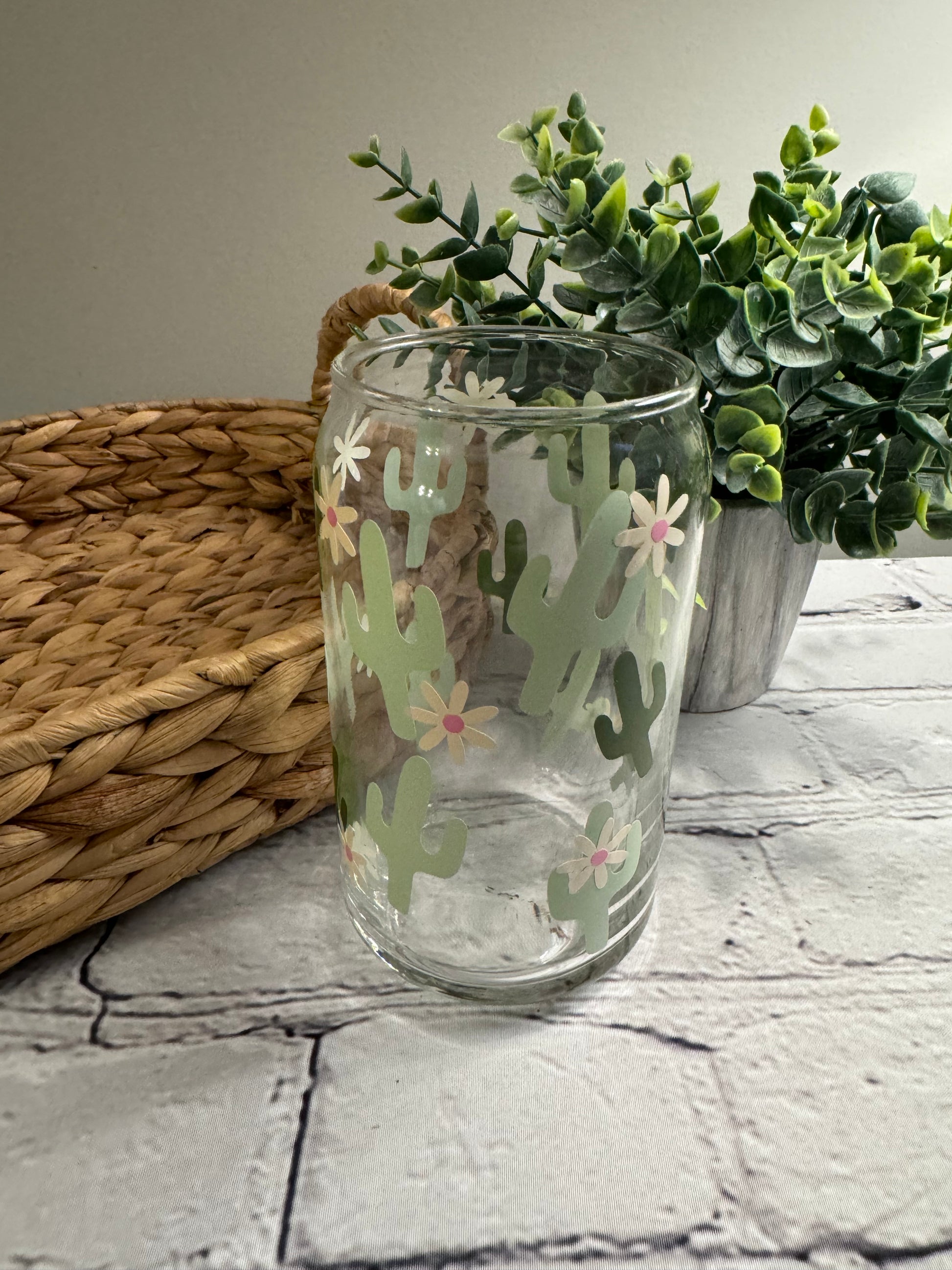 Boho cactus beer can glass