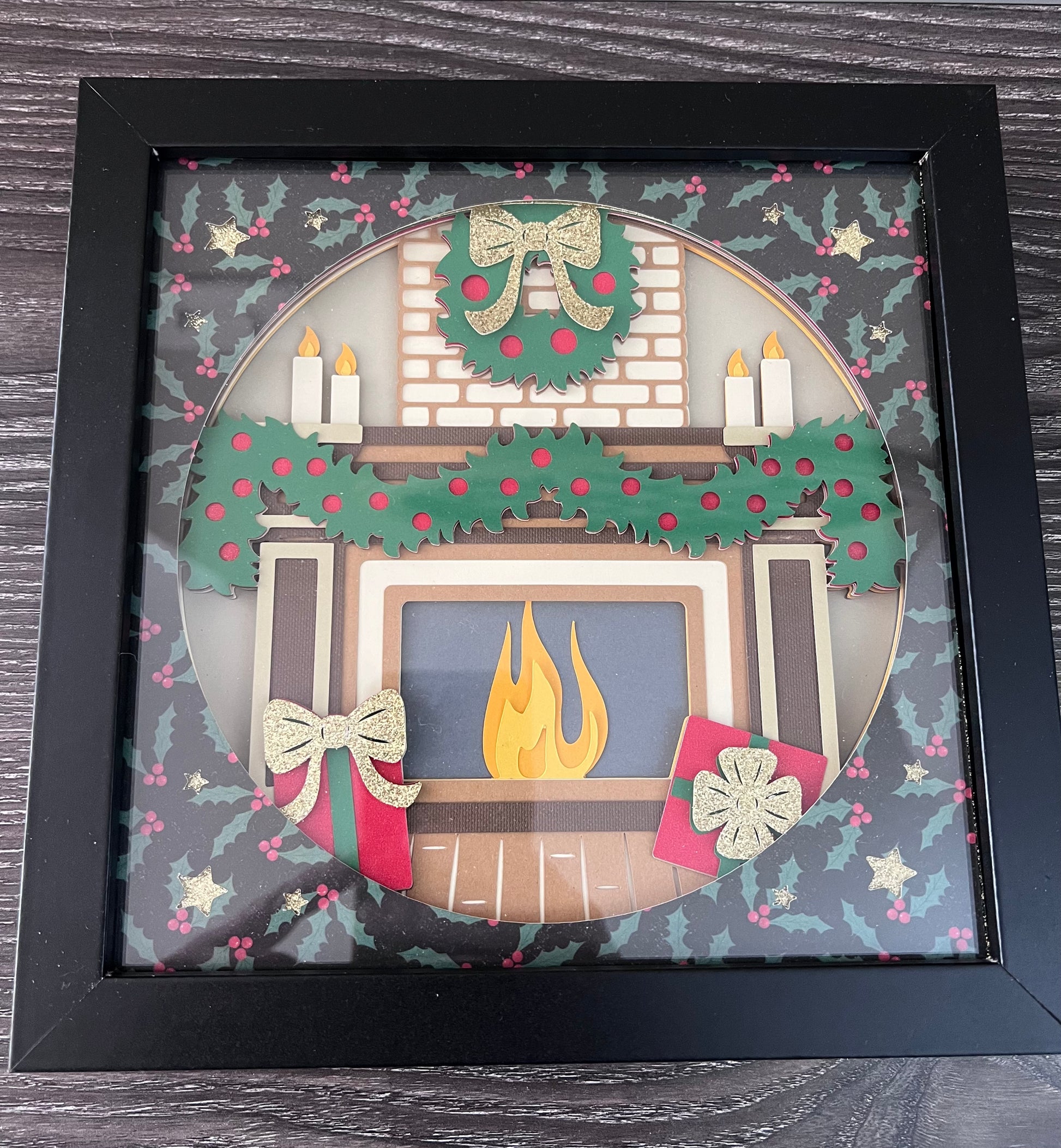 Christmas mantle with stockings 3D paper art in a shadowbox