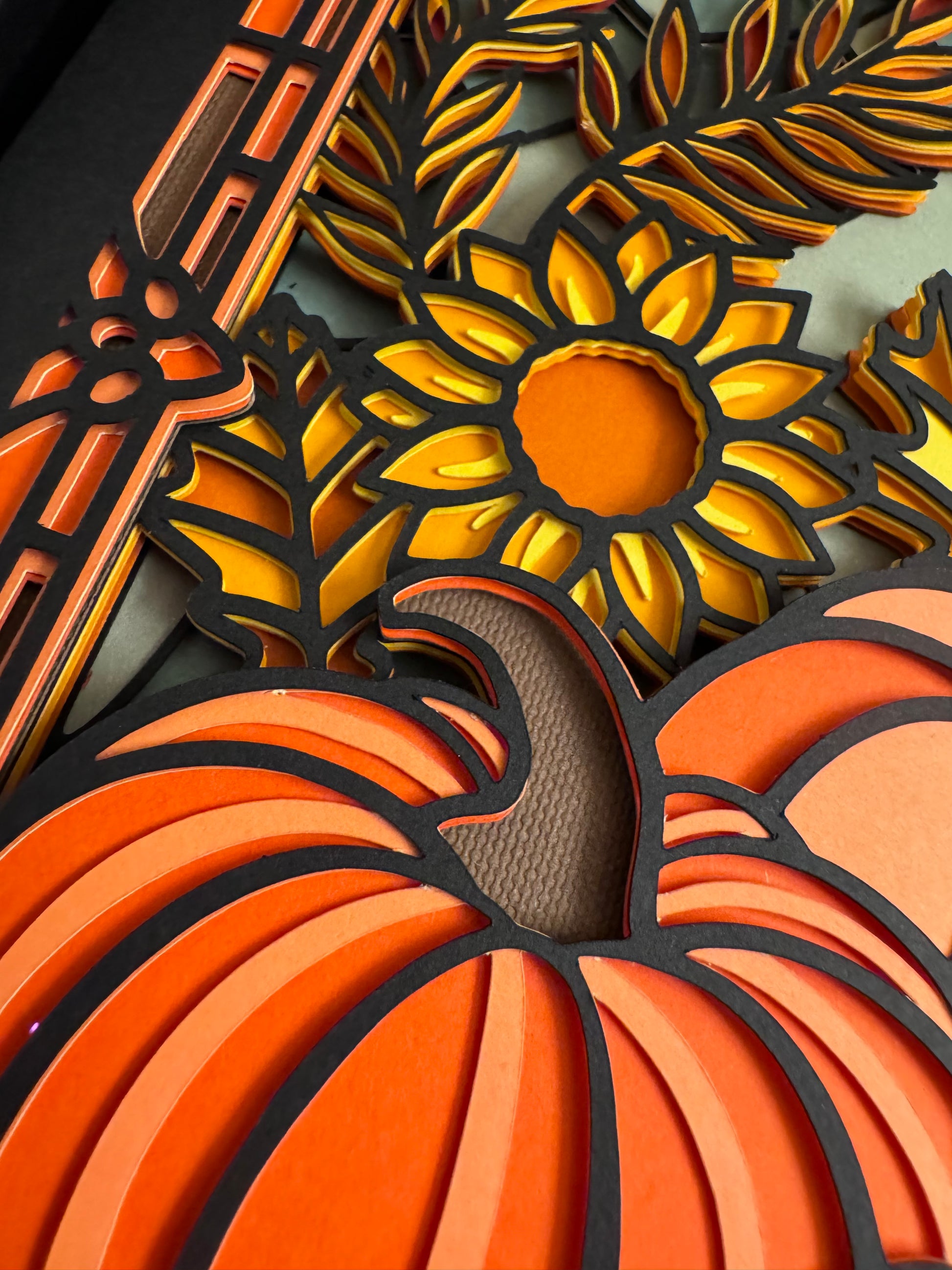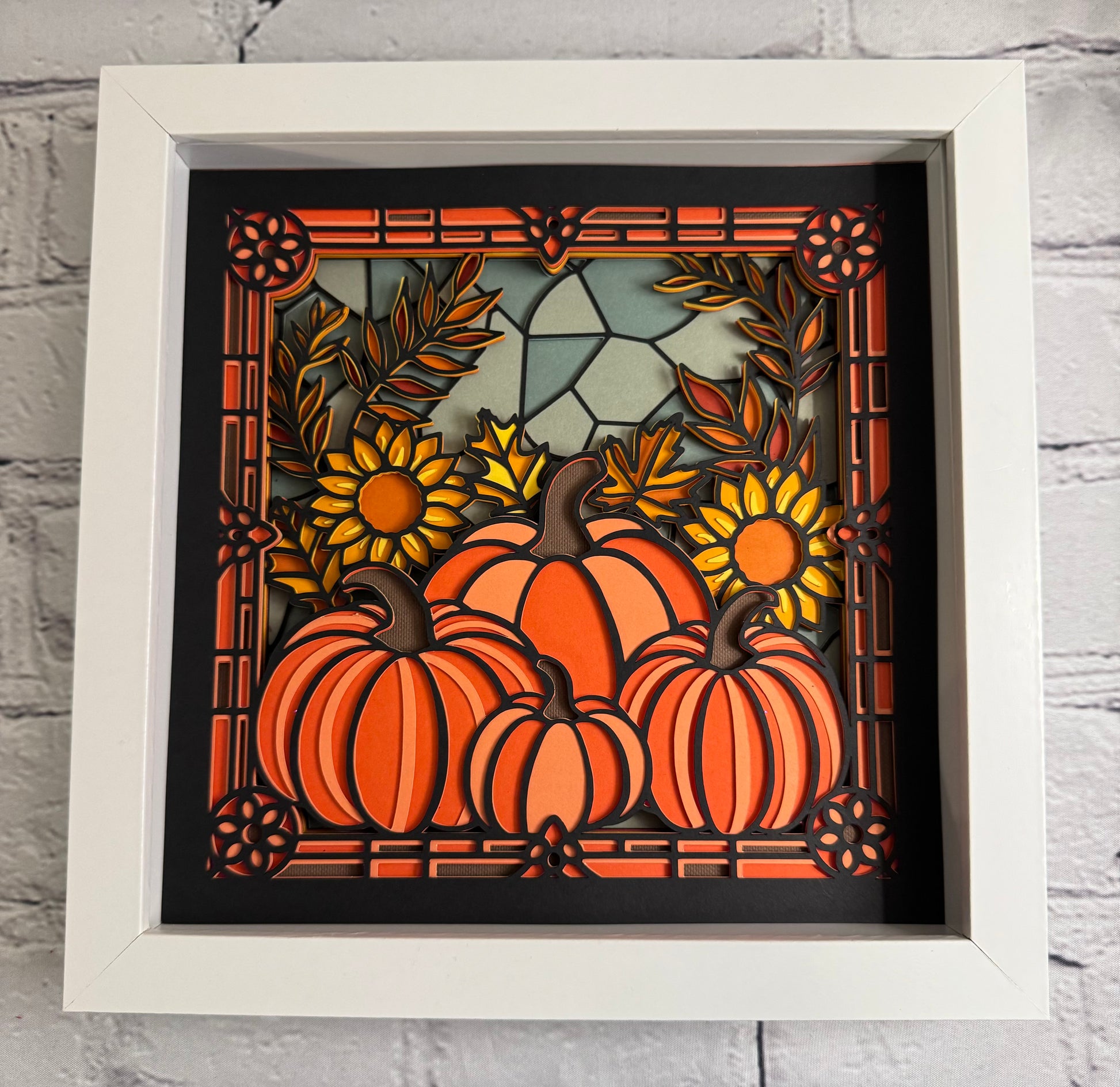 Stained glass pumpkin 3D paper art shadowbox