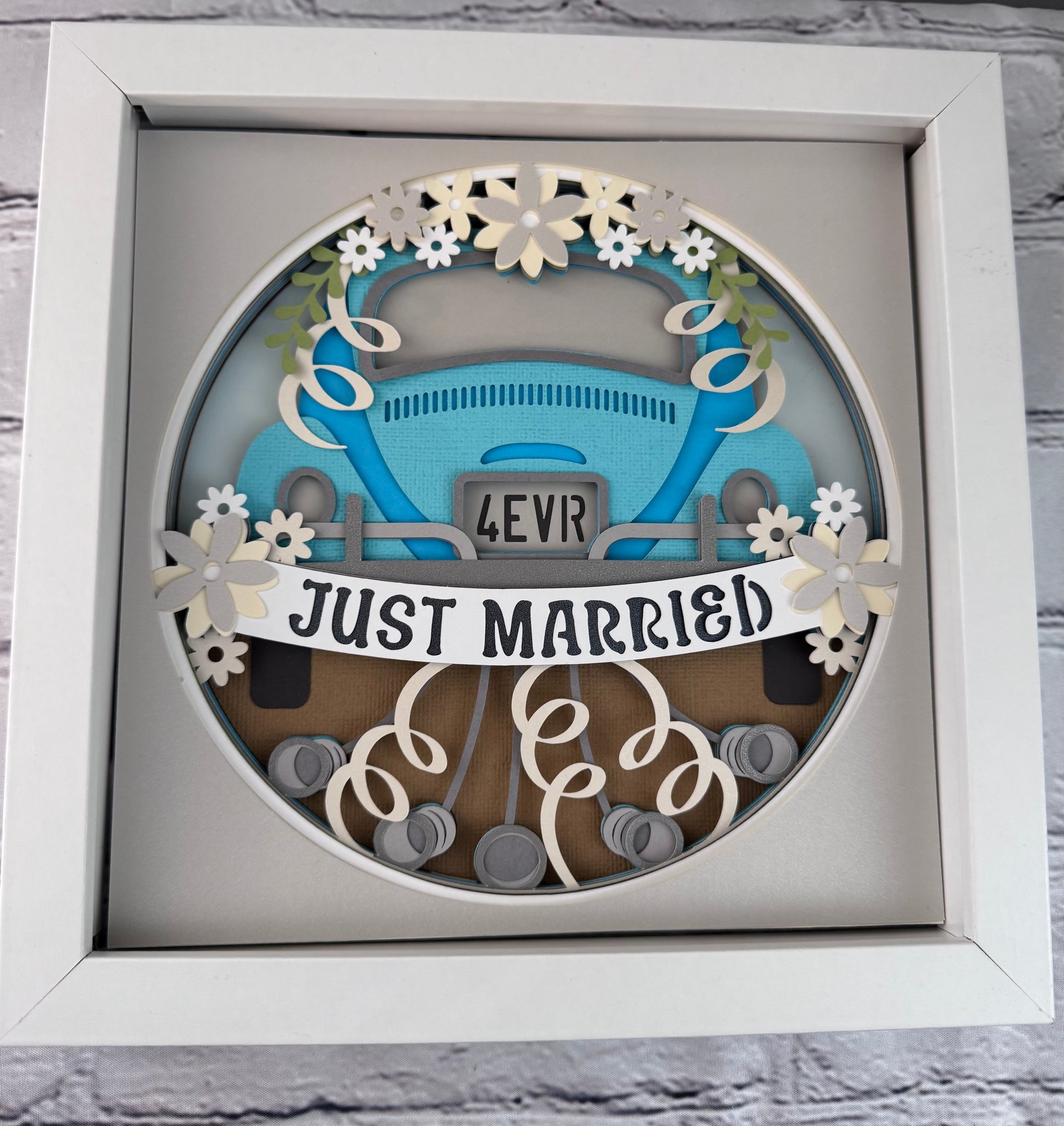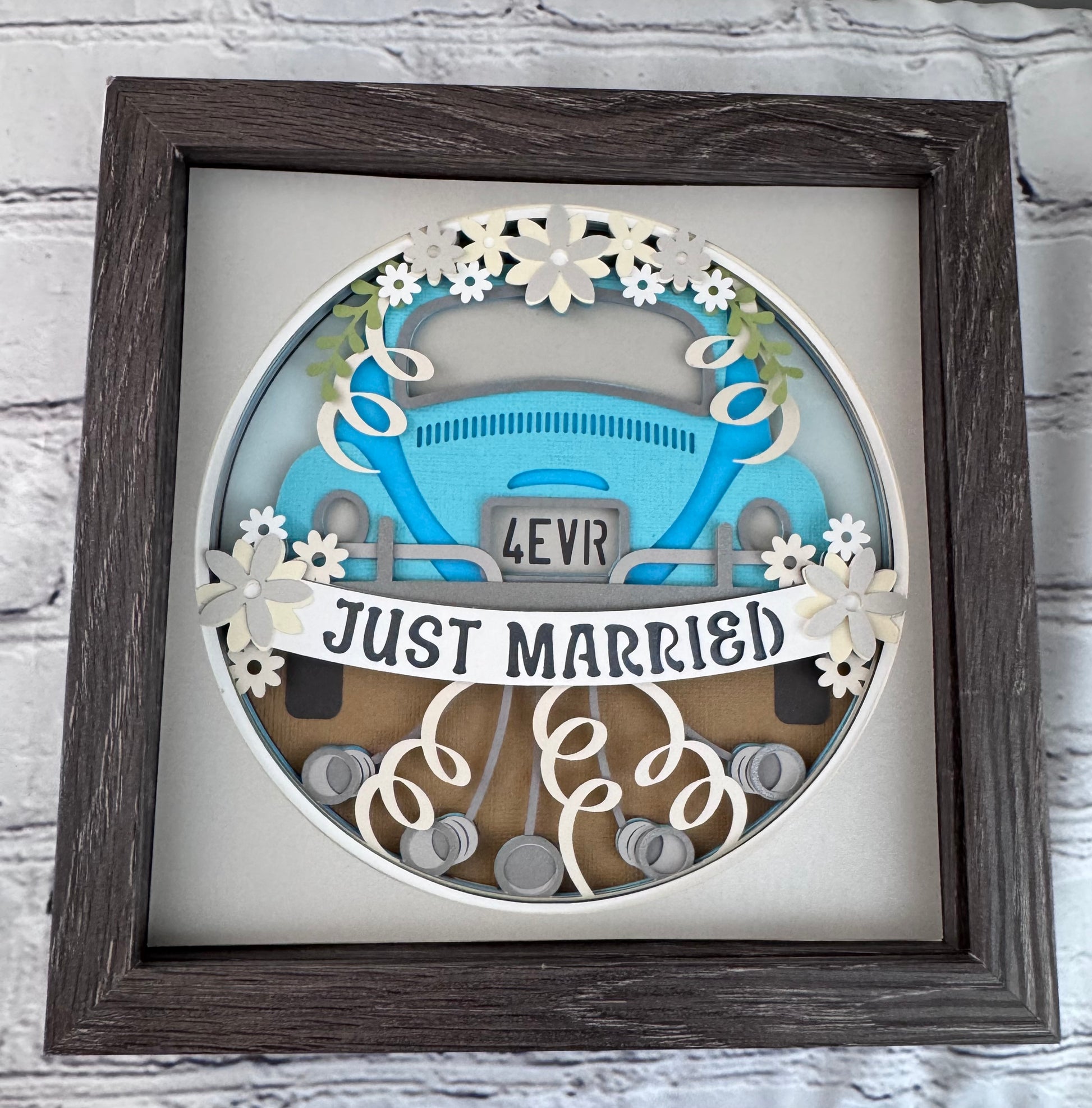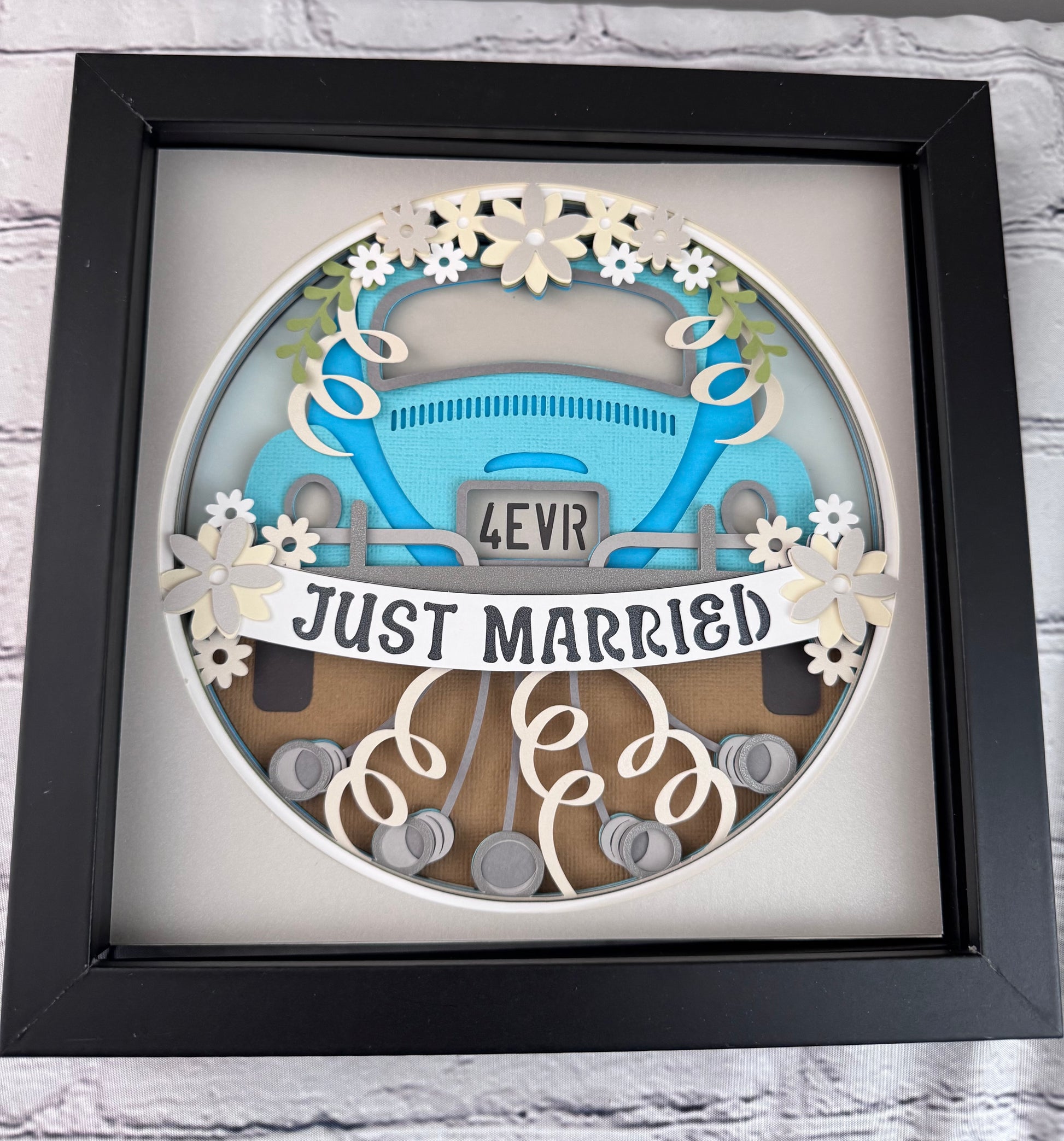Just married 3D paper art in a shadowbox