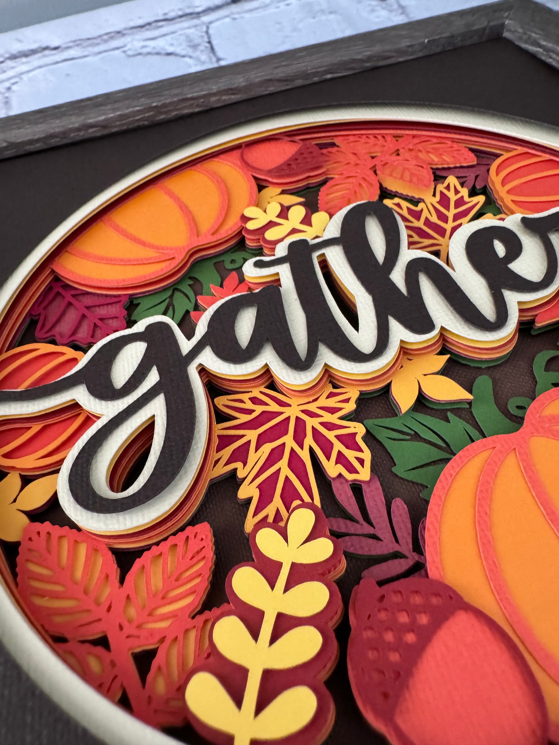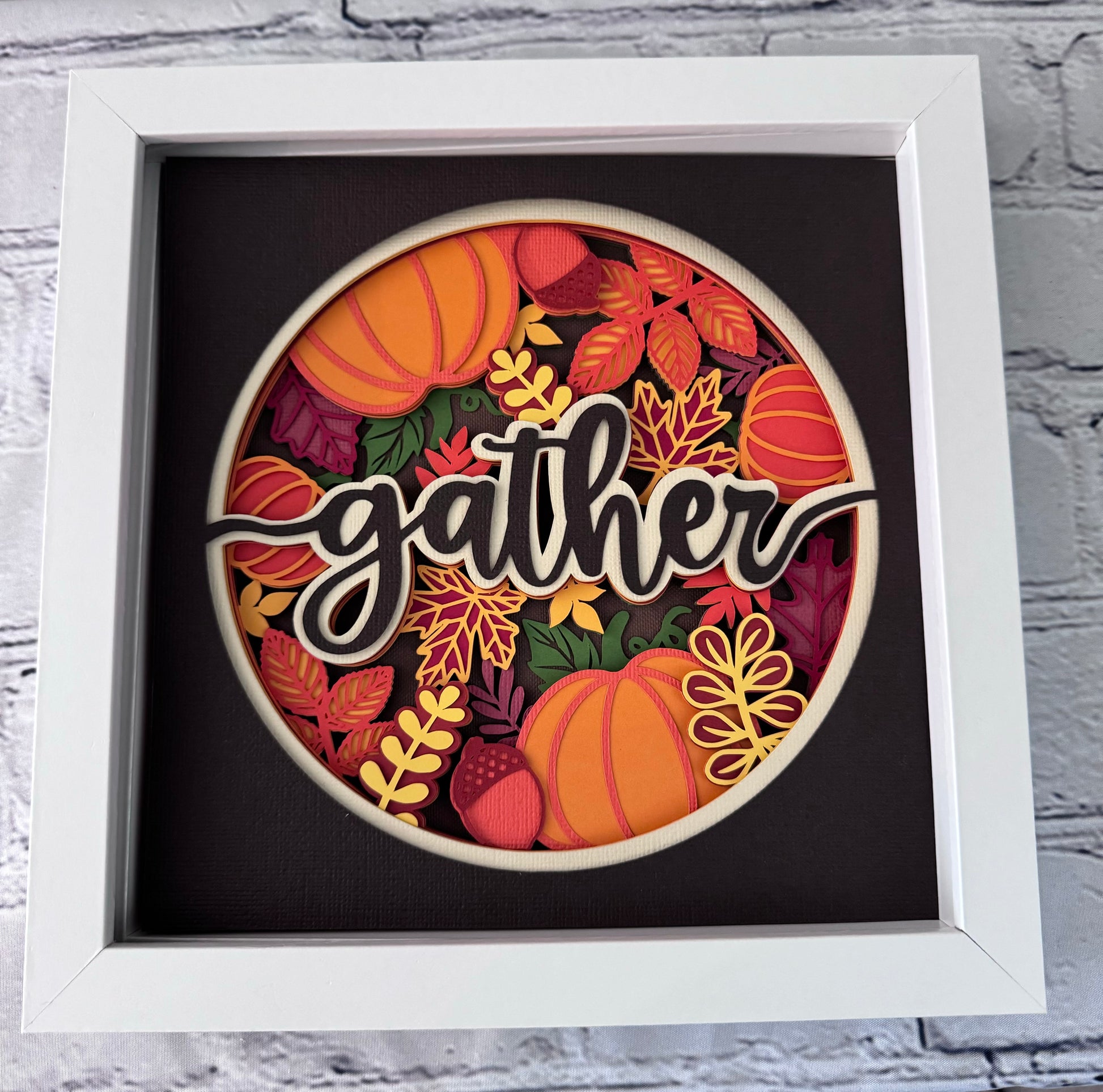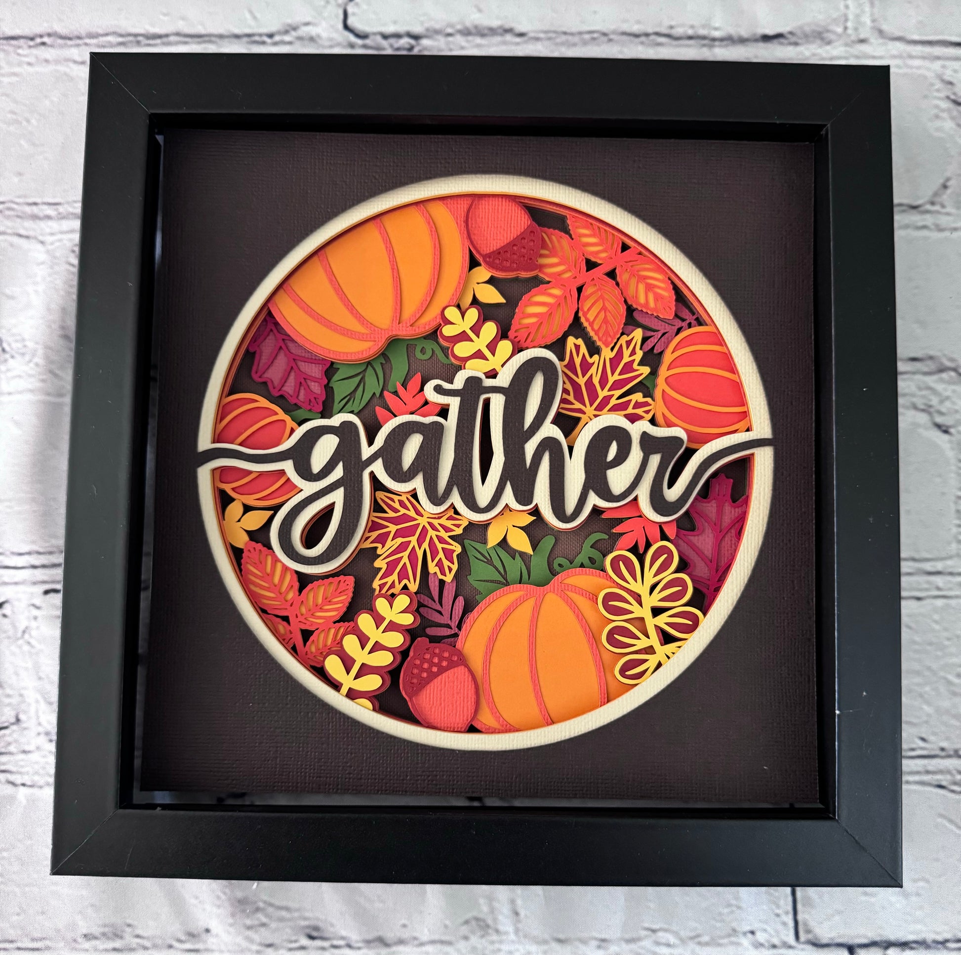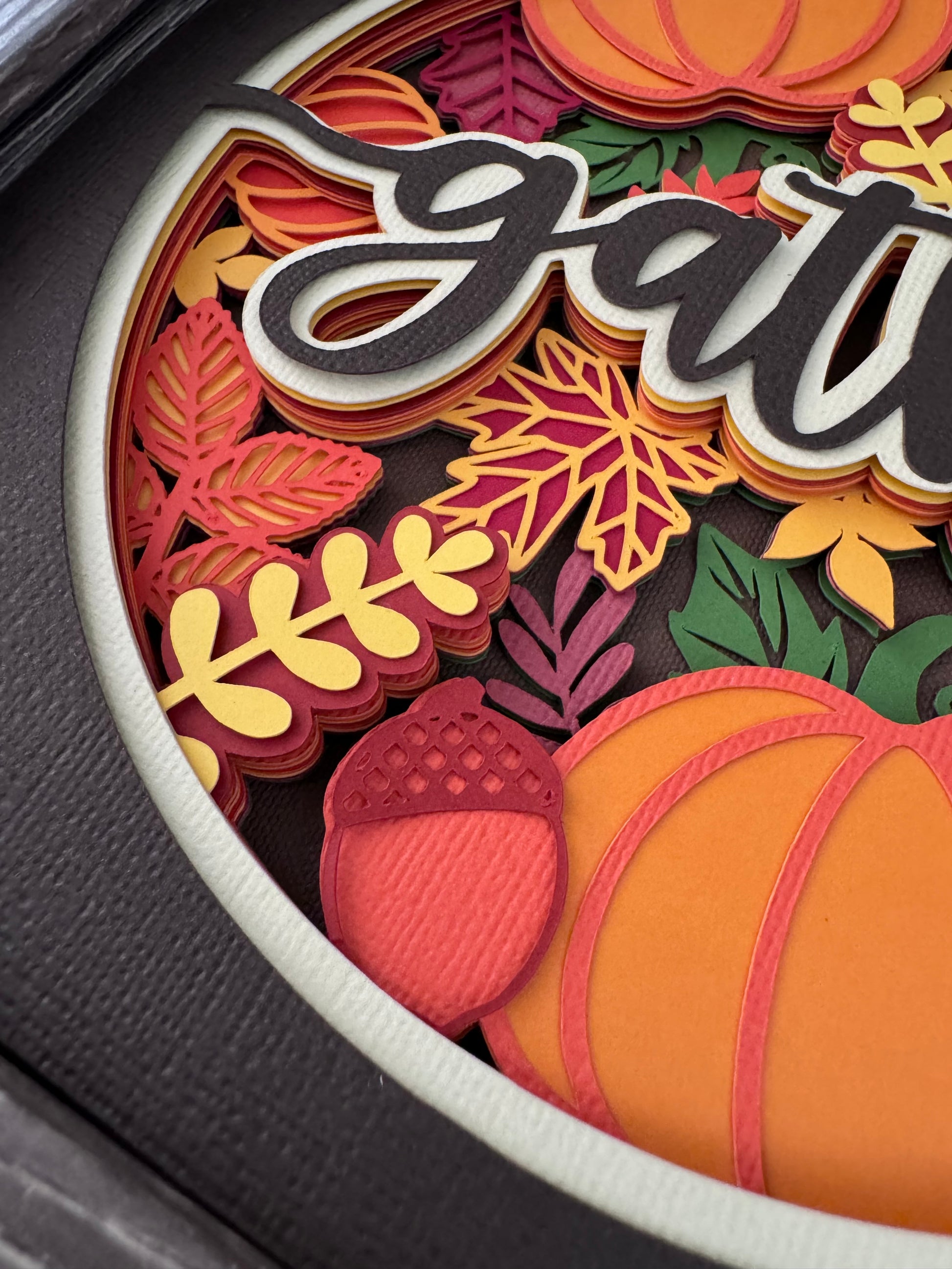 Gather fall leaves and pumpkins design 3D paper art in a shadowbox