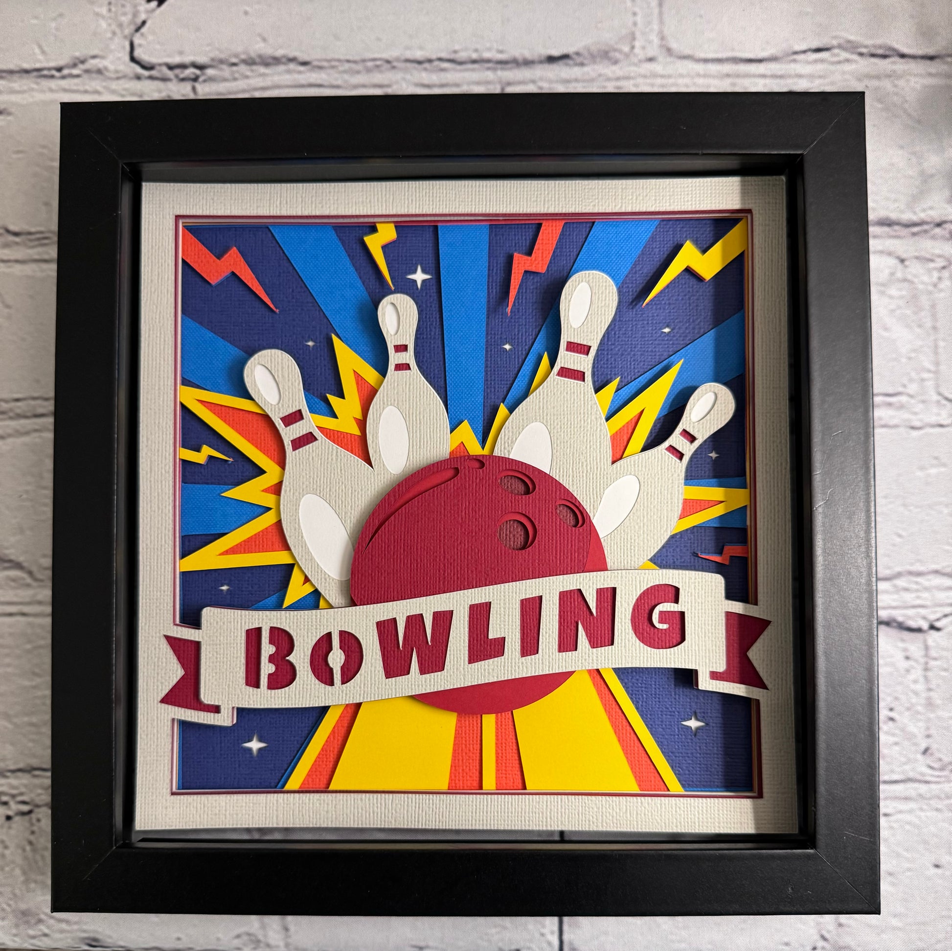 Bowling strike 3D paper art shadowbox