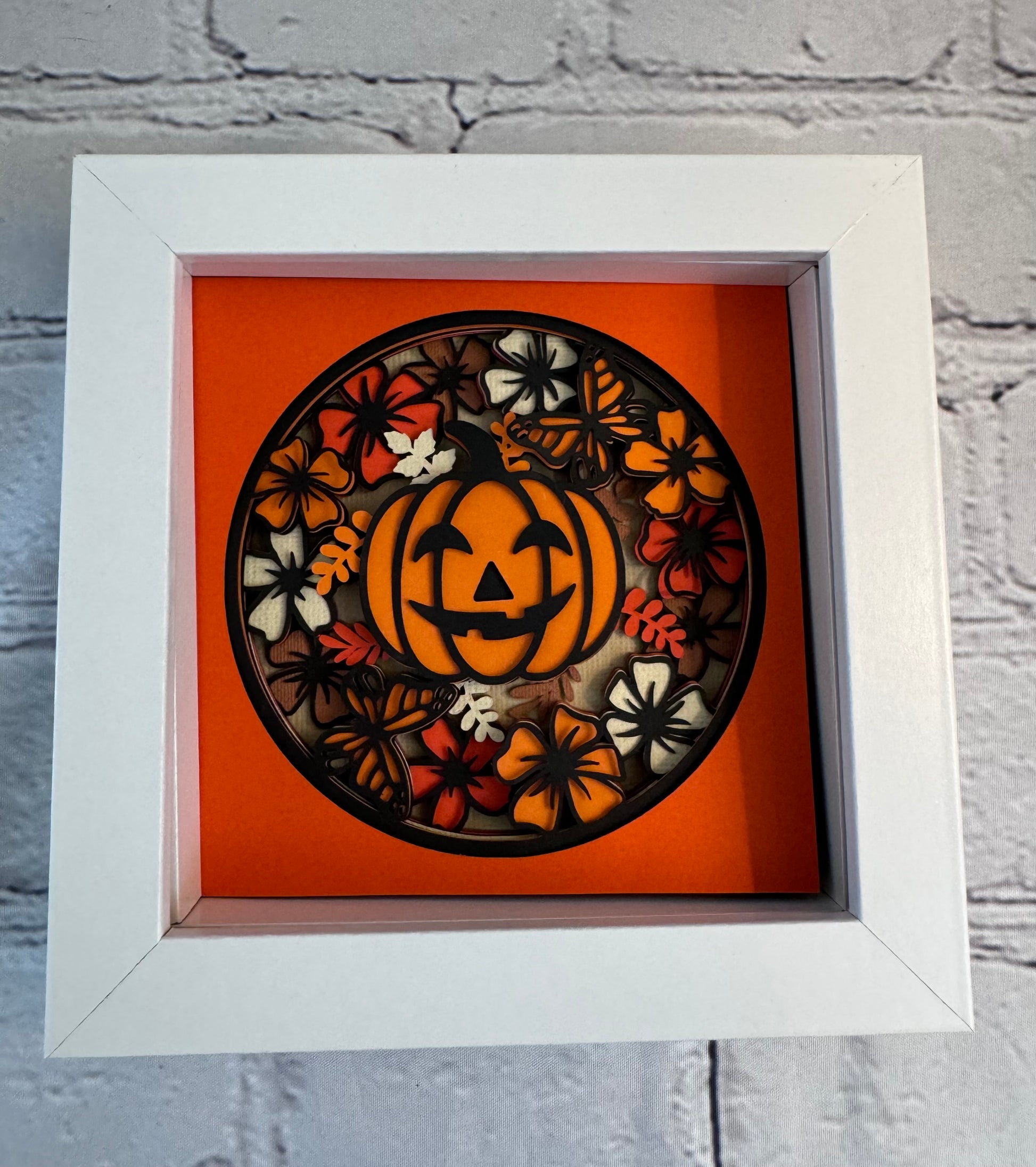 Pumpkin with flowers mini 3D paper art in a shadowbox