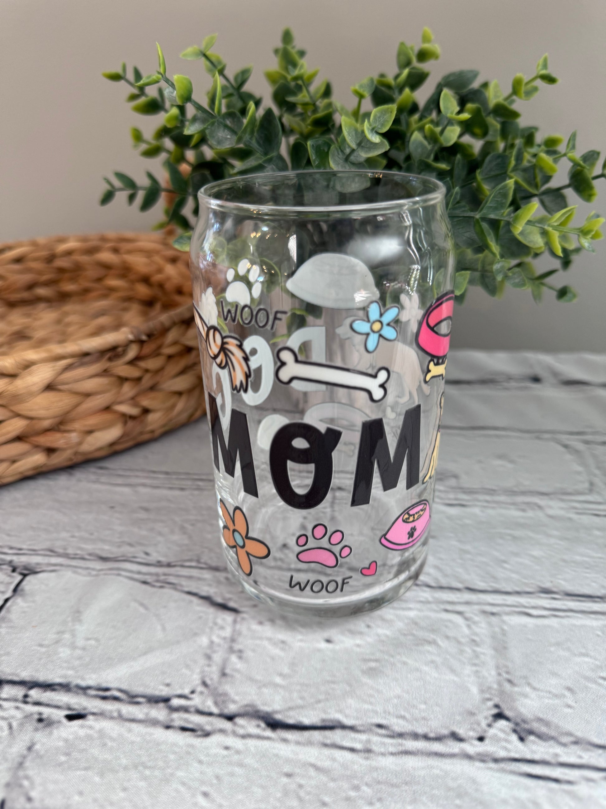 Dog mom beer can glass