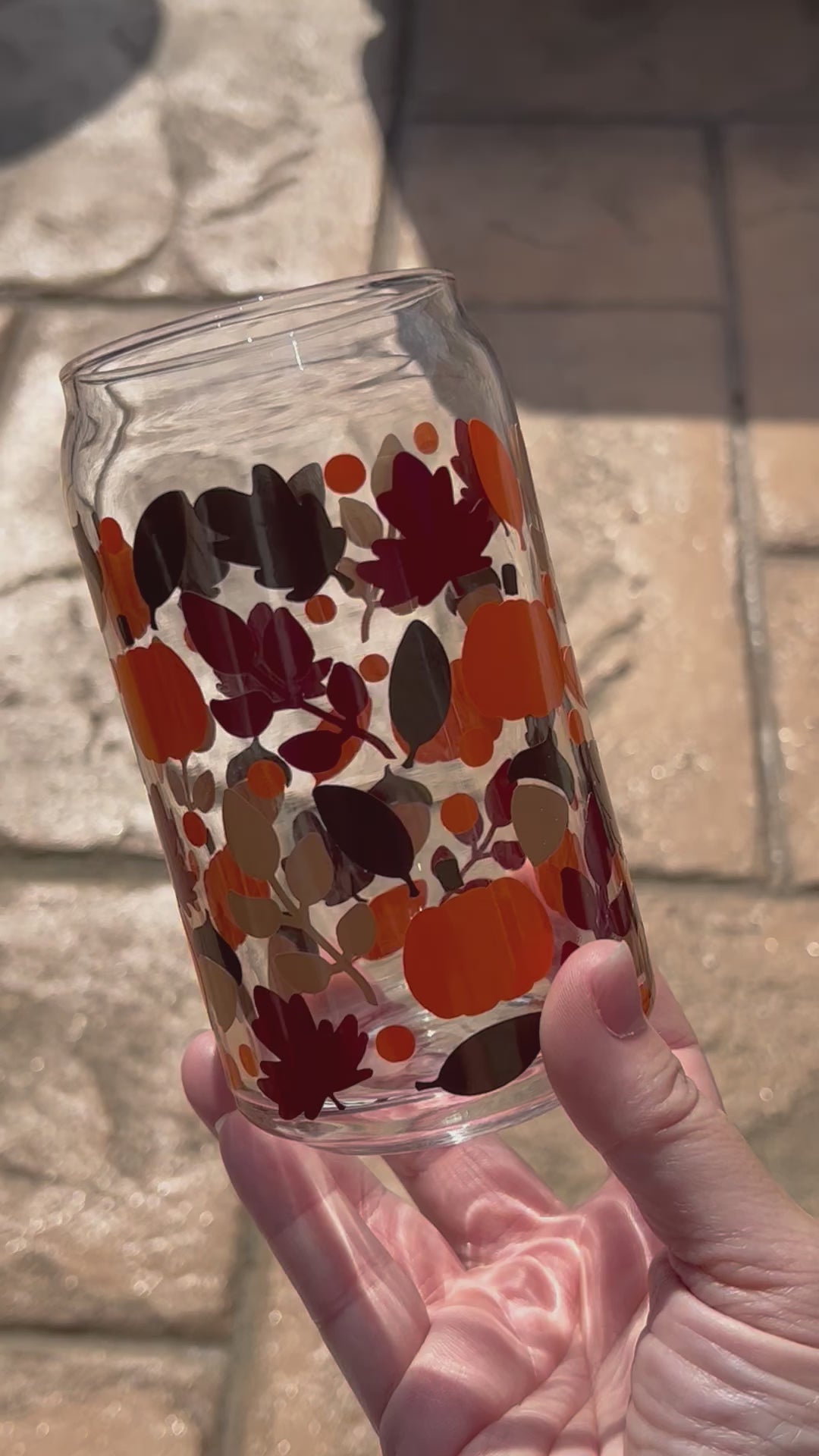 Beer can style glass. Perfect for iced coffee or any other type of cold drink! Designs are made from premium permanent vinyl and hand applied. Placement and color of designs may vary slightly from glass to glass. Bamboo lid and glass straw are included. This glass makes the perfect gift!