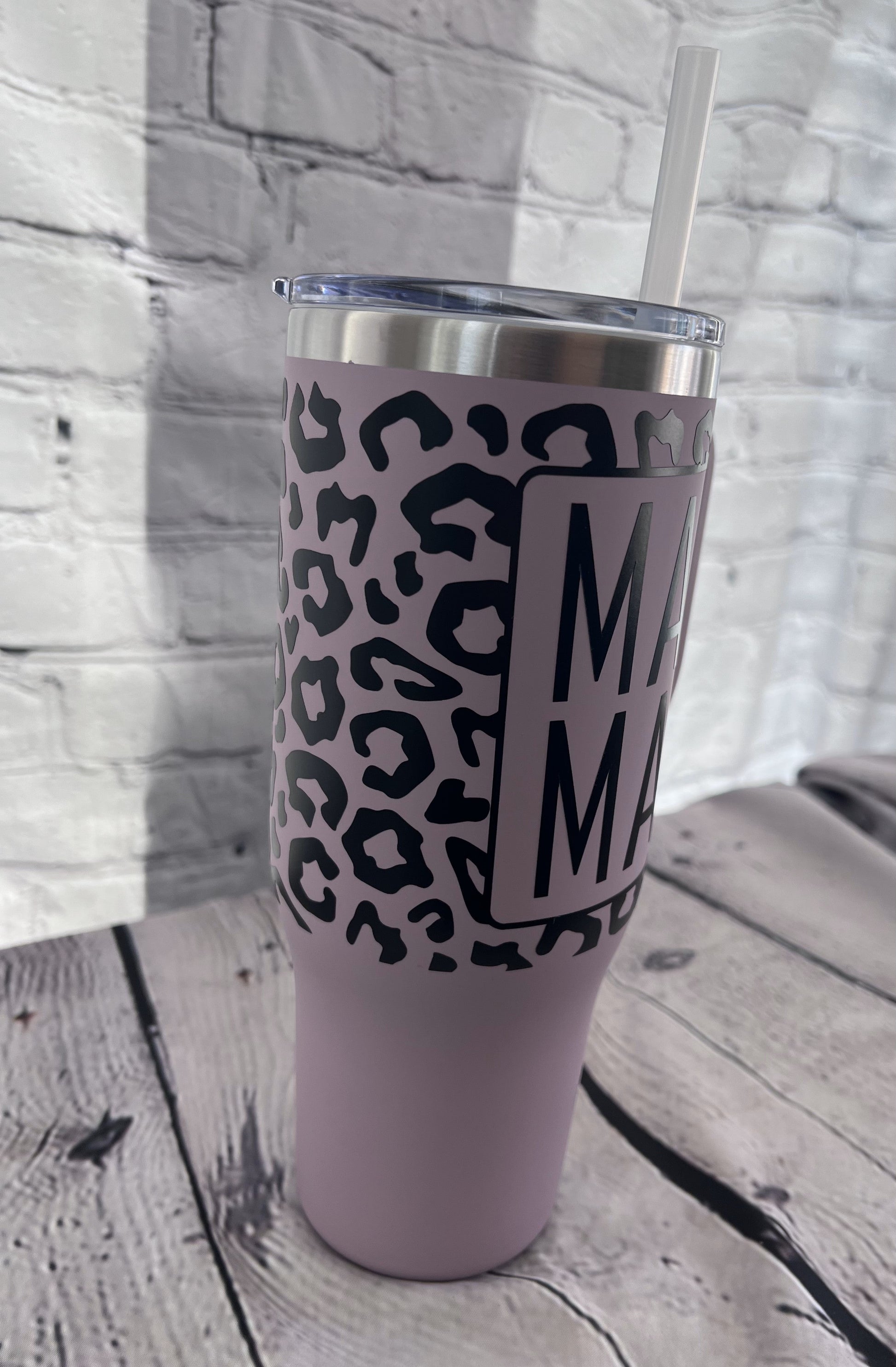 Mama leopard print 40oz handle tumbler with straw and slide lid