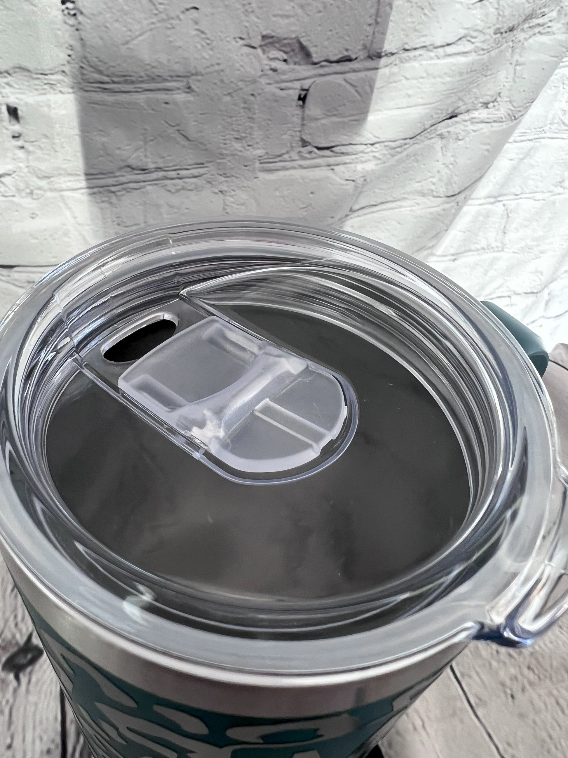 This 40 Oz Tumbler is a top-of-the-line beverage container designed for those who love to stay hydrated on-the-go. Constructed with food grade 18/8 stainless steel and double-walled vacuum insulation, this tumbler is the perfect solution for keeping your drinks hot or cold for hours. The 40-ounce capacity allows you to stay refreshed throughout the day without having to constantly refill. It has a large, ergonomic handle, making it easy to carry and hold while you are out and about. The twist-on, slide lid ensures your drink stays securely inside the tumbler while also preventing any accidental spills or splashes. It's also designed with it's tapered bottom, so that it fits into your vehicle's cupholder.