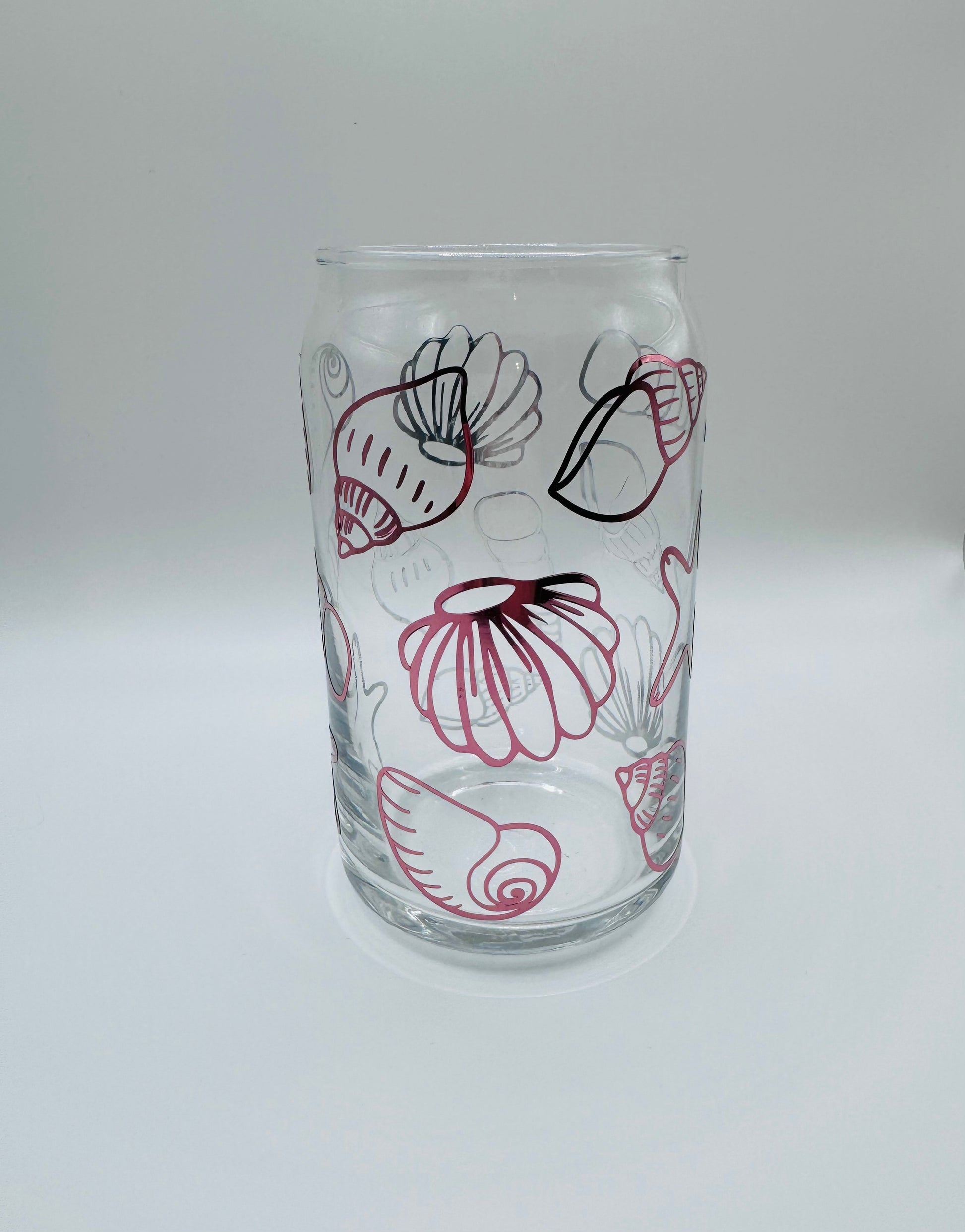 Beer can style glass. Perfect for iced coffee or any other type of cold drink! Designs are made from premium permanent vinyl and hand applied. Placement and color of designs may vary slightly from glass to glass. Bamboo lid and glass straw are included. This glass makes the perfect gift!
