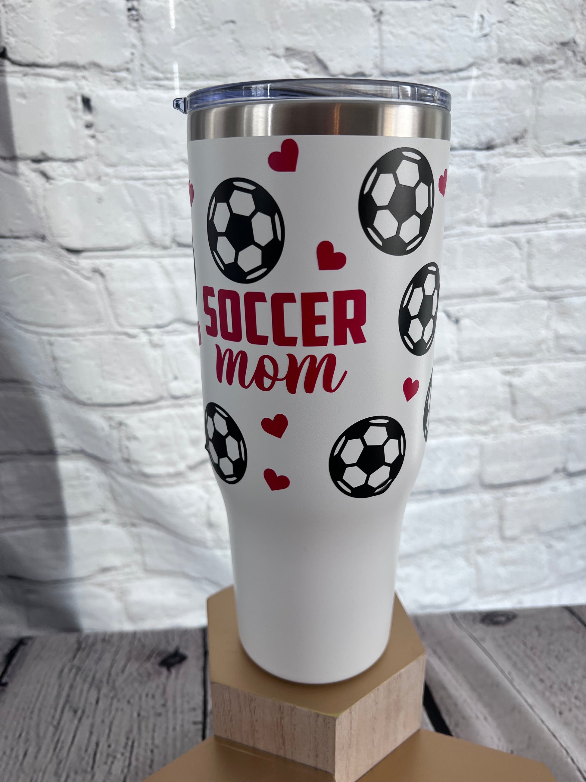 Soccer mom 40oz handle tumbler with straw and slide lid